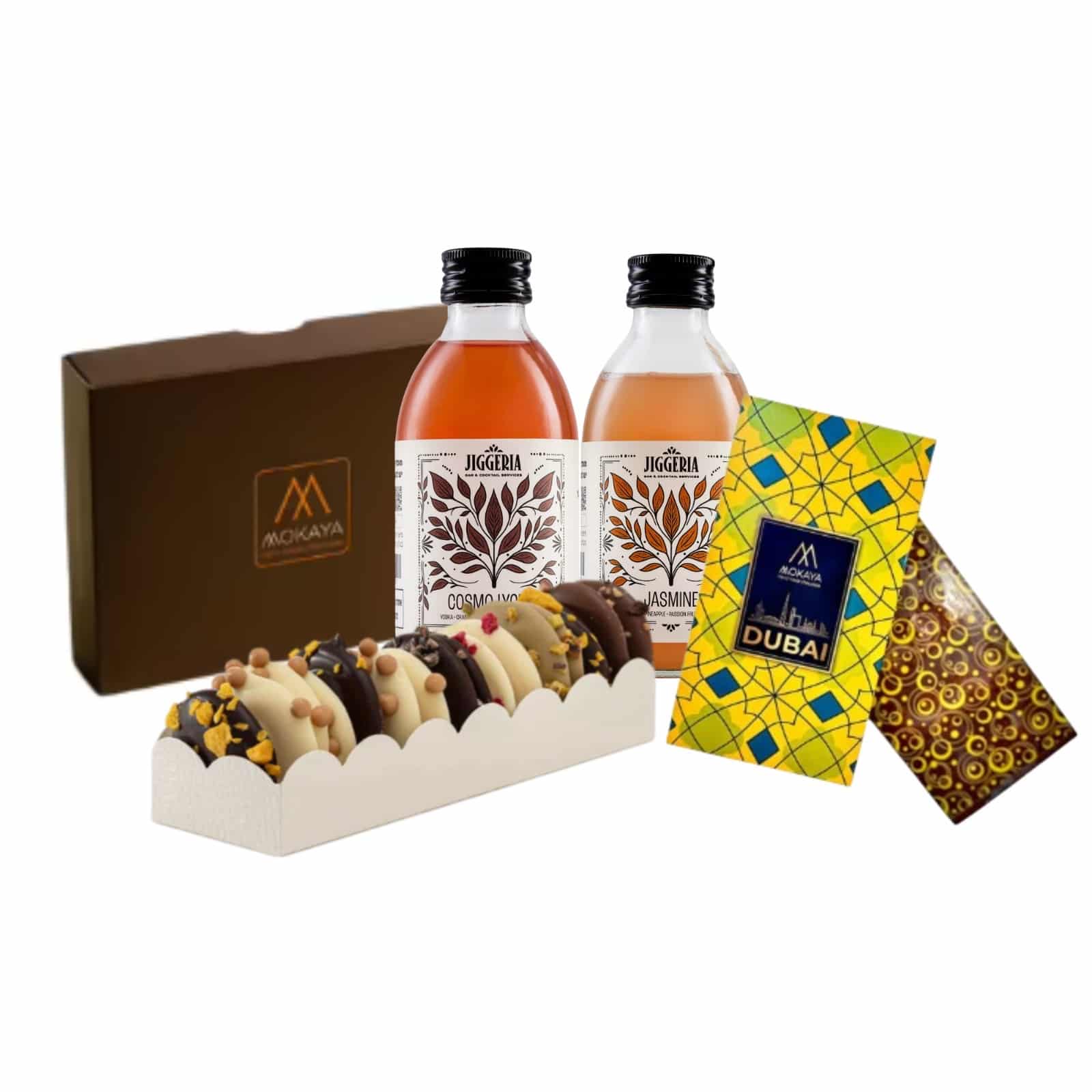 מארז יוקרתי מבית מוקאיה שוקולד, הכולל את הקסם של שוקולד דובאי עם עיצוב מרהיב,