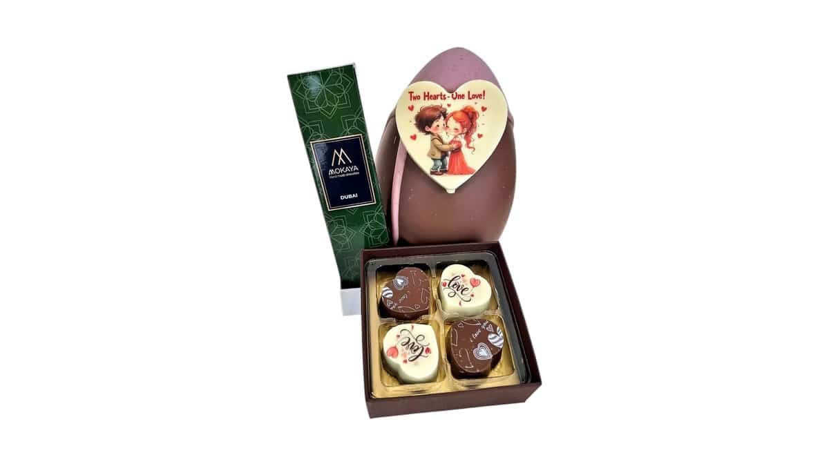 מארז מרהיב לחגיגת טו באב, הכולל ביצת שוקולד מעוטרת בלב, בר שוקולד דובאי וקופסת פרלינים בטעמים משתנים. מתנה מושלמת לאוהבים עם טעם של רומנטיקה! (התמונה להמחשה בלבד)