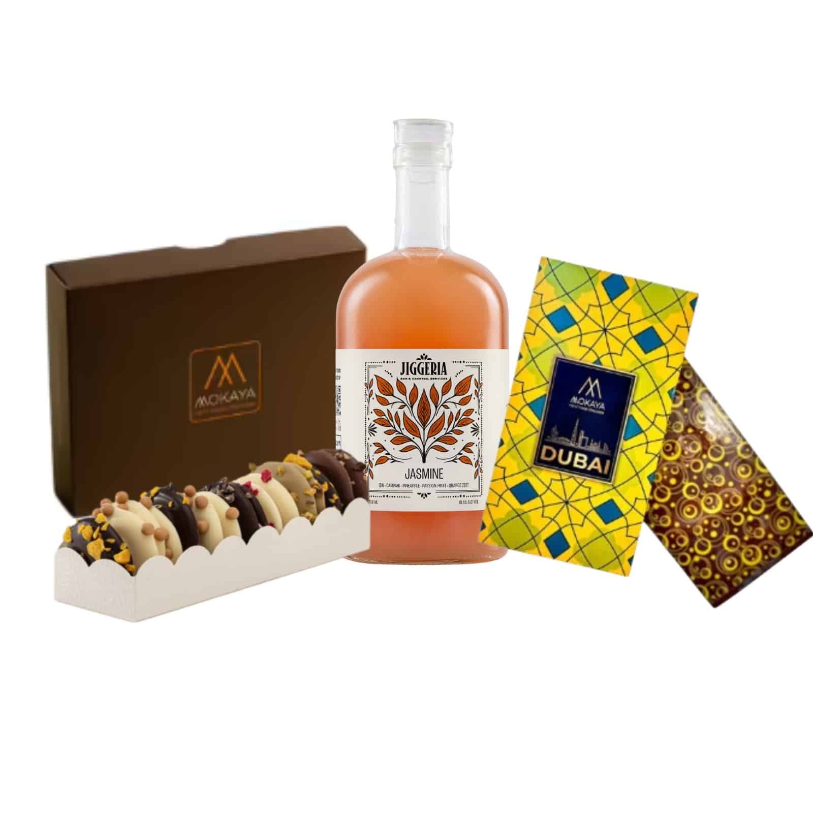 מארז מושלם לחגיגת סיום תואר מבית מוקאיה שוקולד, הכולל קוקטייל משפחתי (700 מ״ל) לבחירתכם מבית ג’יגריה, מארז מדיאנטים מפנק, שוקולד דובאי בעיצוב ייחודי ומארז של 6 פרלינים עשירים. מתנה מושלמת לציון ההישג הגדול עם המשפחה!